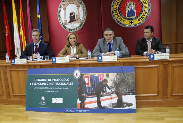 El diplomático ha pronunciado esta mañana la conferencia inaugural de las Jornadas Internacionales de Protocolo y Relaciones Institucionales de la UCAM, que se desarrollan en el Monasterio de Los Jerónimos los días 15 y 16 de marzo