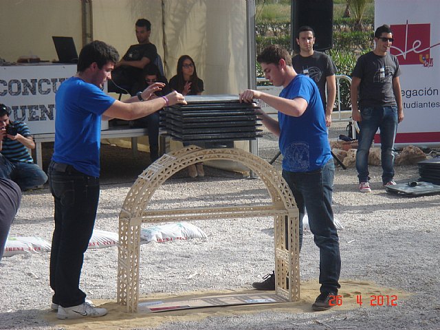 Alumnos del Grado en Ingeniería Química de la Universidad de Murcia han ganado el concurso de puentes construidos con palos de helado en la categoría de movilidad, que ha sido organizado por la Universidad Miguel Hernández (Elche).