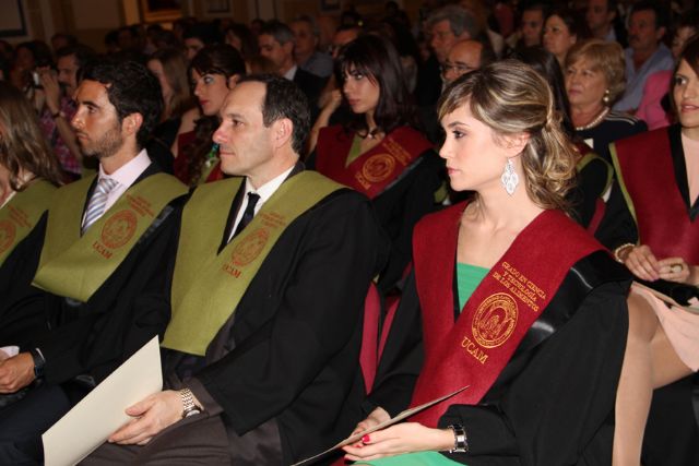 El Templo del Monasterio de Los Jerónimos, sede de la Universidad Católica San Antonio (UCAM) ha sido escenario esta tarde de la solemne y emotiva ceremonia de entrega de Becas y Diplomas acreditativos, a los alumnos de la III Promoción del Grado en Nutrición Humana y Dietética, y de la II Promoción del Grado en Ciencia y Tecnología de los Alimentos de la UCAM. La Vicerrectora de Investigación, y Vicedecana del Grado en Ciencia y Tecnología de los Alimentos, Estrella Núñez, ha presidido la ceremonia acompañada por el Director del Grado Oficial en Nutrición Humana y Dietética, José María Cayuela, y por la presidenta del Grupo Alimentario CARINSA, y madrina de las ambas promociones, Vanesa Martínez Chamorro.
