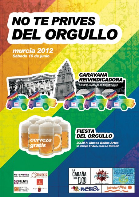 El próximo sábado 16 de junio, el Colectivo No Te Prives, de lesbianas, gays, transexuales y bisexuales de la Región de Murcia, celebra el Orgullo LGTB 2012 en la ciudad de Murcia.