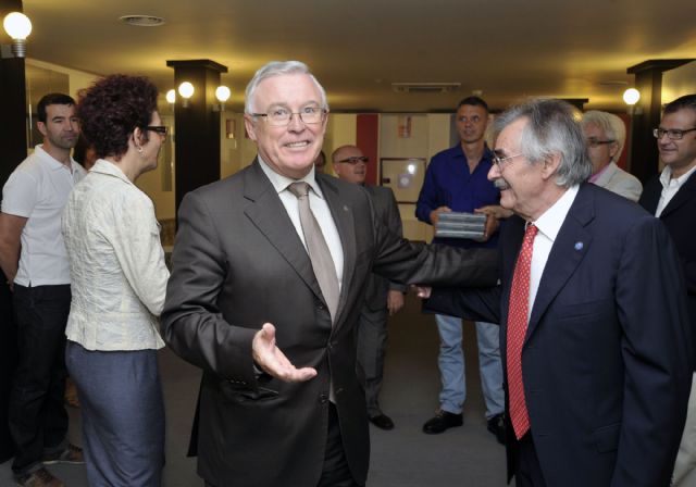 Finalmente, el rector, José Antonio Cobacho, que definió a Diego Marín como un "empresario ejemplar y un trabajador impenitente", le agradeció la colaboración continua de su librería con la Universidad de Murcia.