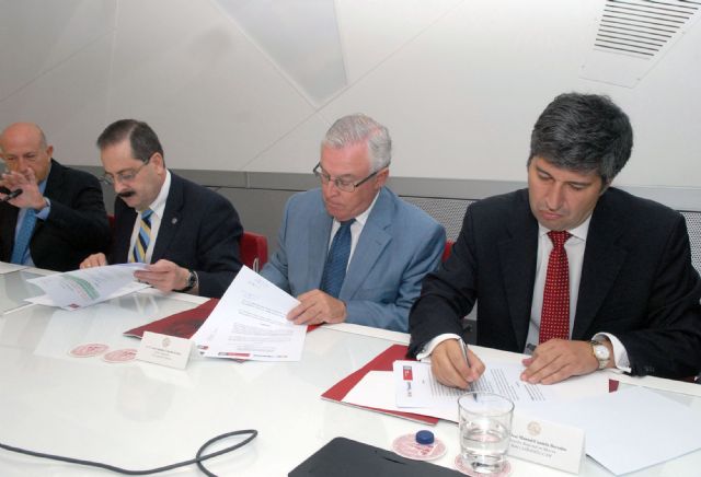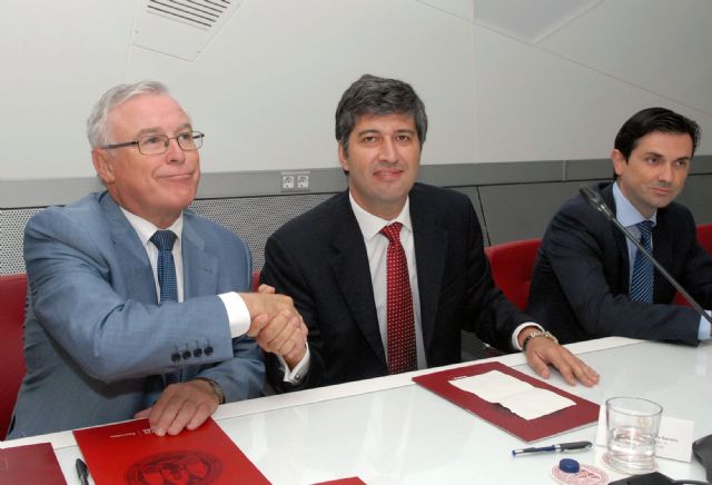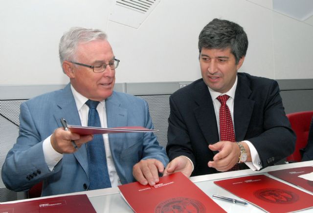 Este servicio es resultado del convenio de colaboración suscrito hoy en Convalecencia por el rector de la Universidad, José Antonio Cobacho, y el director regional en Murcia del banco, José Manuel Candela.