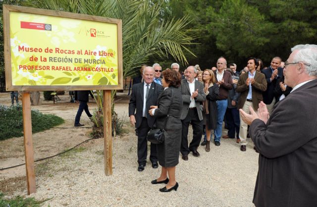 El acto, que estuvo presidido por el rector, José Antonio Cobacho, consistió en el descubrimiento de una placa en el Museo al Aire Libre de Rocas de la Región de Murcia, que pasará a llevar el nombre de Profesor Rafael Arana Castillo.