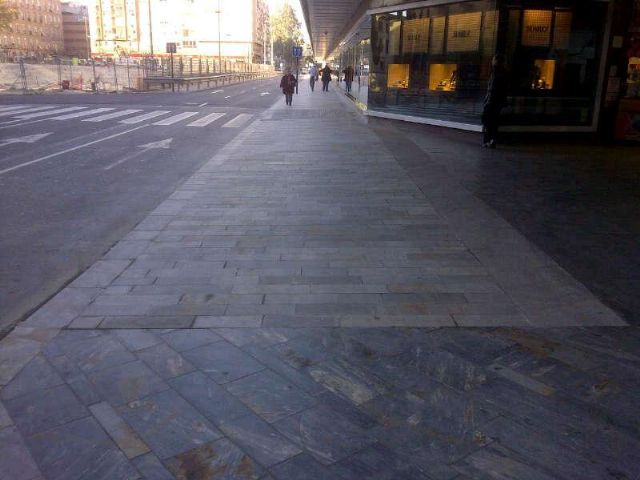 De esta forma ya han finalizado los trabajos previstos en el entorno de Jerónimo de Roda. Las aceras hasta Plaza Condestable ya lucen totalmente renovadas. Para ello se ha utilizado piedra del Cabezo, un pavimento similar al de la avenida de La Libertad con el fin de homogeneizar el entorno.