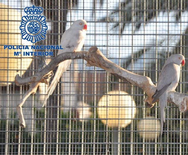 Agentes de la Policía Nacional han desarticulado un grupo presuntamente dedicado al robo de pájaros tropicales. Las aves eran sustraídas en casas de la huerta de Murcia para posteriormente venderlas a través de Internet. Se han recuperado 29 pájaros de la especie cotorra de Kramer y 6 agaporny.