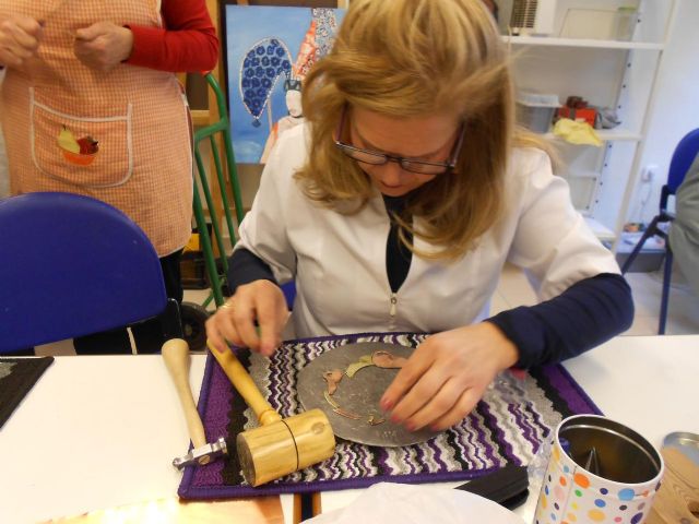 El Centro de la Mujer de El Carmen está realizando un taller de orfebrería para que las socias aprendan a elaborar sus propias joyas de forma artesanal con latón de varios colores y alpaca.