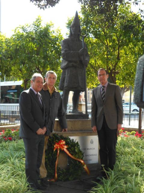 Como cada Miércoles de Ceniza, el Cabildo Superior de Cofradías de Murcia realiza una ofrenda al monumento al Nazareno que hay en la Glorieta