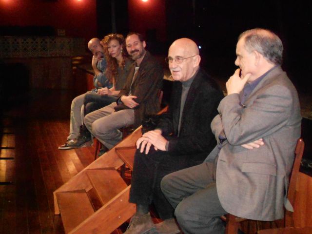Acompañado por el actor murciano, Daniel Albadajlejo; la actriz, Elisa Matilla; el director José Bornás; y el director de Teatro Circo Murcia, César Oliva; el dramaturgo y director de teatro, José Sanchis Sinisterra, ha mantenido esta mañana un coloquio con estudiantes de la Escuela Superior de Arte Dramático de Murcia.