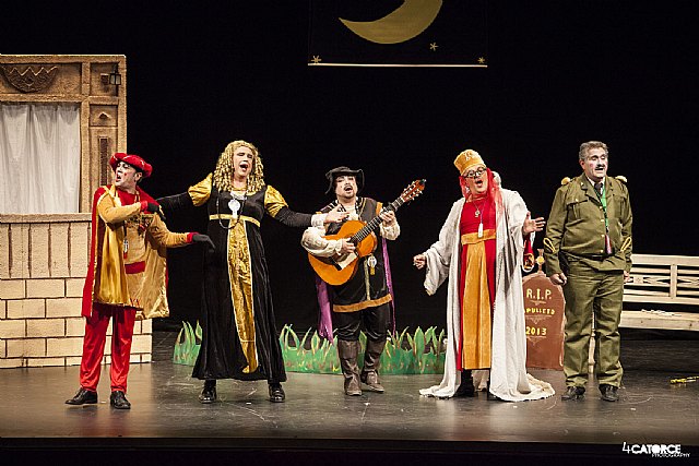 El Certamen Nacional de Chirigotas "Ciudad de Murcia" desarrollado el pasado 23 de febrero, sábado, en el Teatro Romea de la capital resultó ser todo un éxito. Con el cartel de “No hay billetes” colocado desde dos semanas antes de la celebración del mismo, los asistentes disfrutaron de una agradable velada, que comenzó con el Cuarteto “El Destrío” de Beniaján, con su "Bromeo y con tetas", parodia del clásico de William Shakespeare “Romeo y Julieta”, que fue muy del agrado del público y que gustó mucho. Seguidamente llegó el turno de la veterana Chirigota "Los Singuangos" de Cartagena con "Los tontos del capullo", que este año están celebrando sus 25 años. A continuación llegó el turno de la Chirigota de Aledo con "Traspuesto tó' el día", una chirigota que causó gran sensación por su afinado cante y su gran sentido del humor. Posteriormente salió a escena la Chirigota de Beniaján con "Los Paraos", toda una batería de herramientas salidas de su taller, que ya “llevan paradas 4 años, 6 meses y 1 día…” comienzan diciendo en su presentación. Fue ésta una actuación muy aplaudida por el público que despedía a la Chirigota de Beniaján puesto en pie para dar paso al gran broche de oro, la Comparsa de Kike Remolino y José Manuel Cardoso, de Cádiz, "Los Válidos". Todo un lujo para la parroquia carnavalera que se dio cita en el Teatro Romea. Gente venida de toda la provincia de Murcia, así como de la vecina Alicante, con unas ganas tremendas de escuchar a la comparsa remolinera, que deleitó al gran público con su repertorio de este Carnaval 2013, con Los Válidos, un canto a las personas con minusvalía física y discapacidad, las barreras que encuentran en el mundo actual y su fuerza para vivir y seguir cada día, para acabar con antología de su autor Kike Remolino, en carnavales anteriores. La carne de gallina por momentos entre los asistentes con pasodobles de gran intensidad y sensibilidad y cante de muchos quilates fueron la nota dominante en esta comparsa invitada a cerrar el Certamen Nacional de Chirigotas “CIUDAD DE MURCIA”.