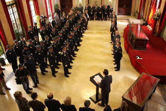 Cincuenta y tres miembros del Cuerpo de la Policía Local de Murcia han sido protagonistas del acto celebrado esta mañana en el Salón de Plenos con motivo de la festividad de San Patricio, patrón del Cuerpo. El Alcalde, Miguel Ángel Cámara, ha hecho entrega de los honores y distinciones previstos en el reglamento, que se conceden por segunda vez.