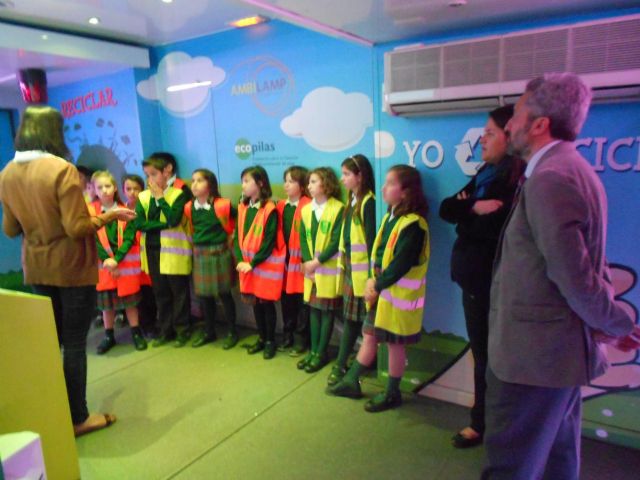 La Concejal de Educación, María Dolores Sánchez, ha visitado esta mañana el aula móvil Escuela de Reciclaje, que está organizada por AMBILAMP, RECYCLIA, TRAGAMÓVIL Y ECOPILAS. Se podrá visitar hasta el viernes y está previsto que 450 alumnos y 25 profesores de Jesuitinas la conozcan estos días.