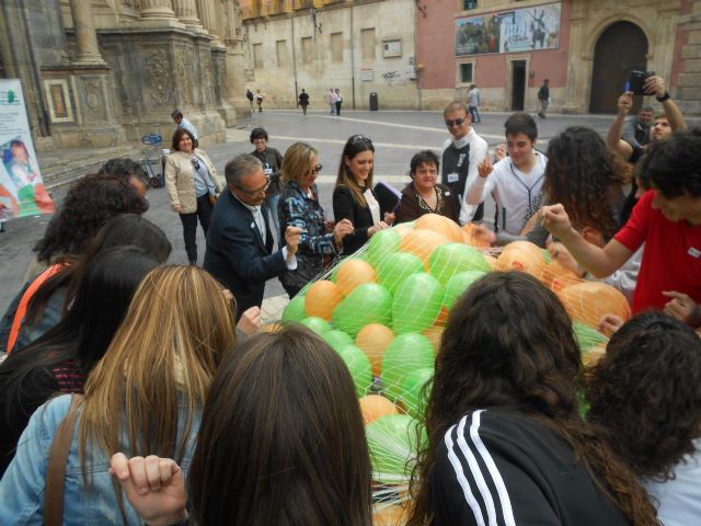 Bajo el lema “Tú respiras sin pensar… Yo sólo pienso en respirar”, la Asociación Murciana de Fibrosis Quística ha instalado una mesa informativa en Belluga y a las 13 horas ha tenido lugar el acto simbólico de pinchar centenares de globos.