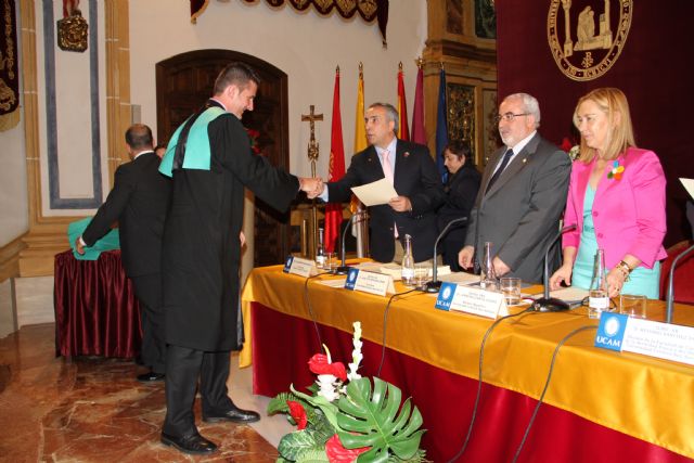 El Templo del Monasterio de Los Jerónimos, sede de la Universidad Católica San Antonio de Murcia (UCAM), ha acogido esta tarde el emotivo acto de Imposición de Becas y Entrega de Diplomas a los alumnos de la I Promoción del Grado de Ciencias de la Actividad Física y del Deporte (CAFD). El decano de la Facultad de CAFD, Antonio Sánchez Pato, presidió el acto al que acudió Alejandro Blanco, presidente del Comité Olímpico Español, en calidad de padrino.