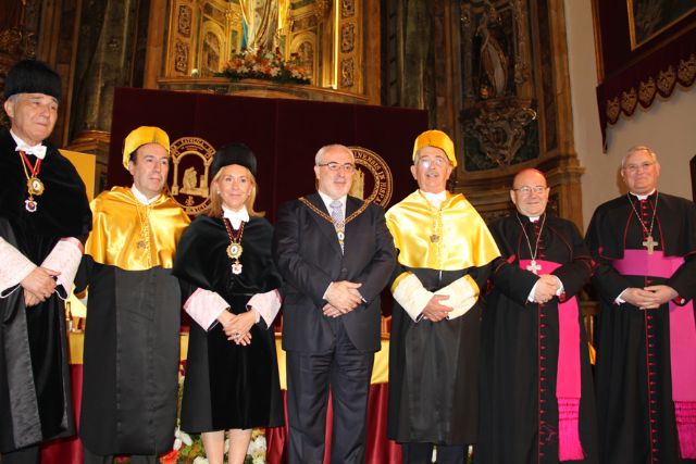 Durante el acto académico también ha intervenido el obispo de la diócesis de Cartagena, monseñor José Manuel Lorca Planes, que ha mostrado su felicitación a la Universidad por la celebración de su Patrón, y ha invitado a todos los docentes, investigadores y profesionales al servicio de la sociedad a que "asienten su vida sobre el conocimiento de la fuente de la sabiduría por excelencia, que es Dios".