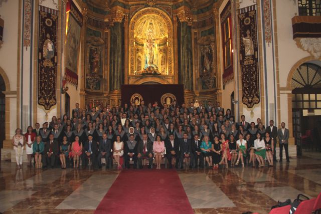 La Universidad Católica de Murcia (UCAM) ha celebrado esta mañana el solemne Acto de Imposición de Becas y Entrega de Diplomas a los alumnos de la II Promoción del Grado en Enfermería (grupos C y D). En el acto académico ha intervenido el presidente de la UCAM, José Luis Mendoza, junto a la decana de la Facultad de Enfermería, Paloma Echevarría, y el al padrino de los alumnos, el director gerente del Instituto Murciano de Acción Social, Fernando Mateo.