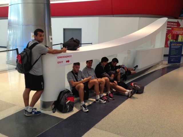 La plantilla que dirige Eduardo Sao Thiago 'Duda' tras un largo viaje en avión de Madrid, con transbordo en Philadelphia y un poco de retraso en el vuelo que les llevaba a Greensboro, Carolina del Norte, están asentados en el hotel de concentración en el que hoy descansan para empezar mañana la competición.