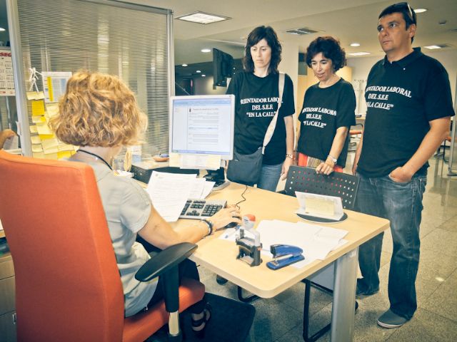 El colectivo de trabajadores del programa OPEA (Acciones de Orientación Profesional para el Empleo y Asistencia para el Autoempleo) ha llevado a cabo esta mañana una protesta ante la sede del SEF, en la que se ha informado a los ciudadanos sobre la supresión del principal programa de orientación para desempleados de la Región.