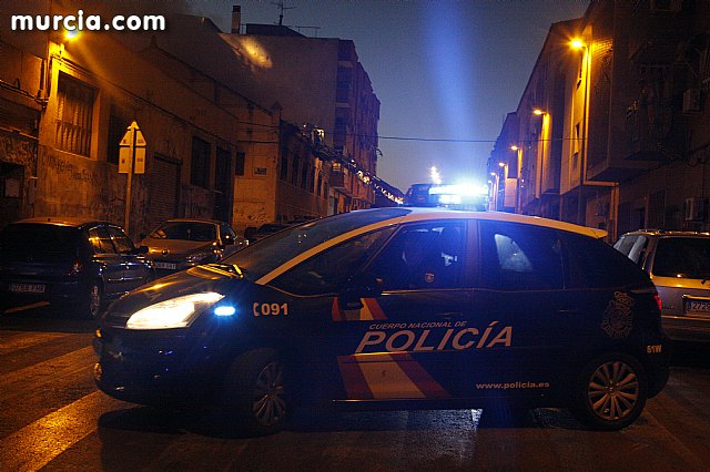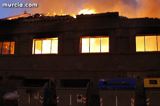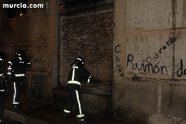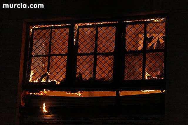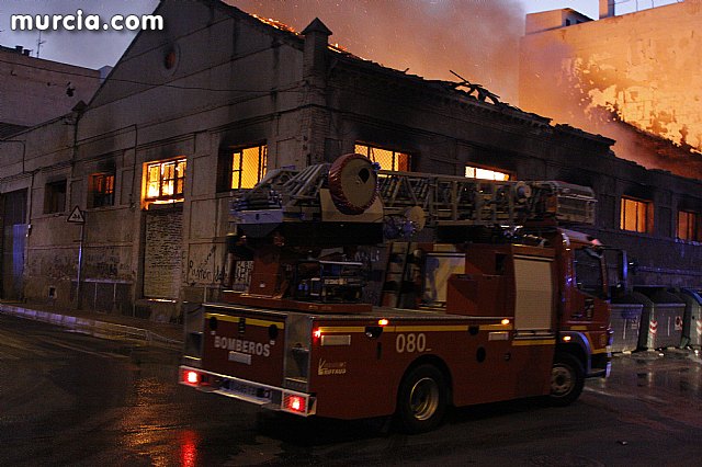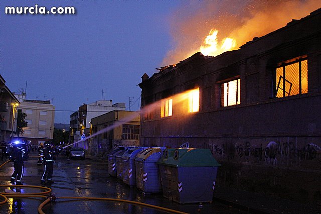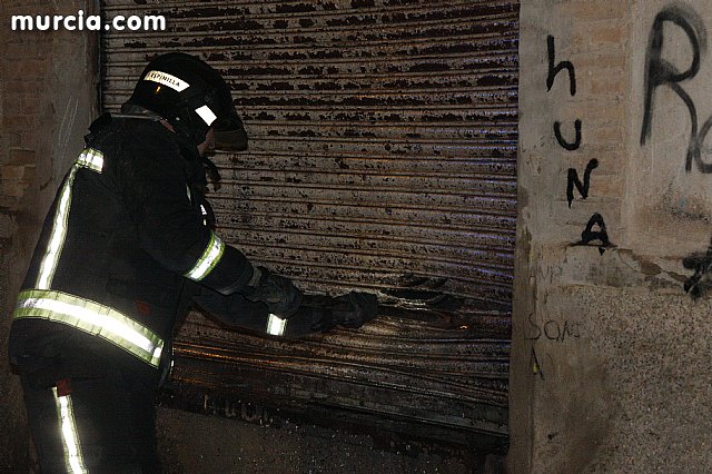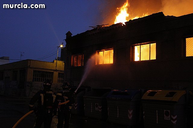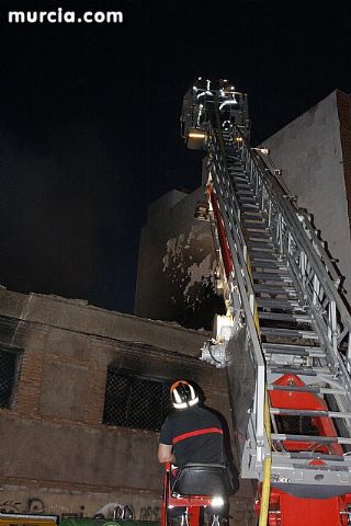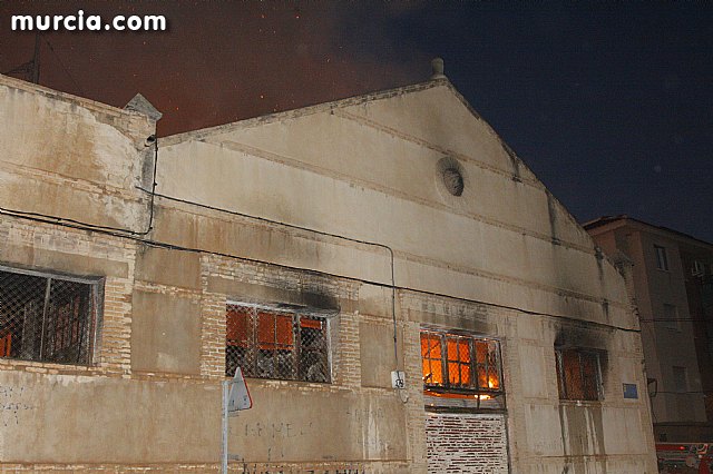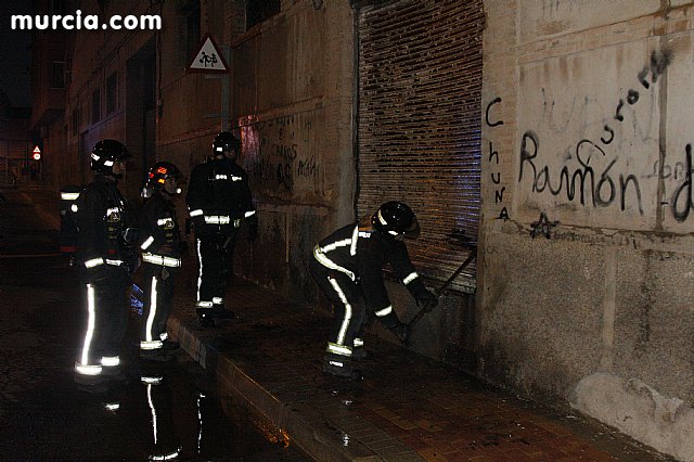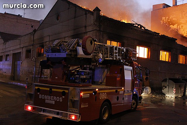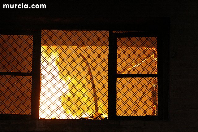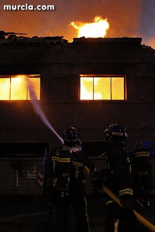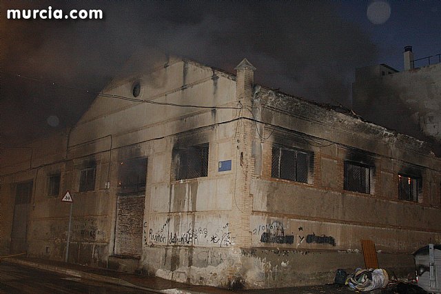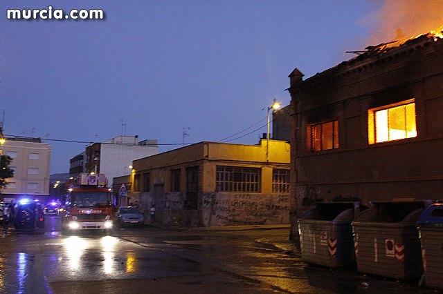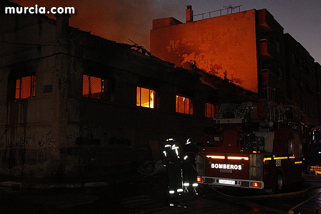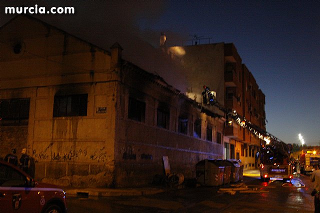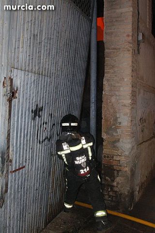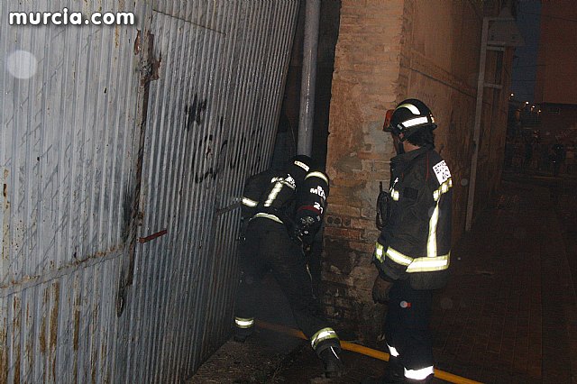 Bomberos del S.E.I.S. del Ayuntamiento de Murcia se desplazan a la C/ San Fermín de Espinardo, donde está ardiendo un almacén. Hay numerosas llamadas de vecinos, que indican la posibilidad de extensión al edificio colindante.