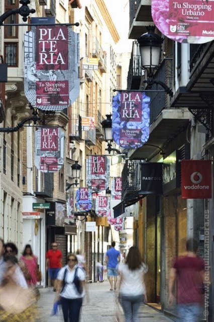 En esta fase del plan se ha llevado a cabo la renovación de la calle Platería, lo cual contribuirá a fomentar el comercio de la zona y a dotar a la calle de una imagen singular. A fin de mejorar su aspecto y resultar más atractiva para los paseantes y clientes de los comercios aledaños, e han eliminado pintadas y limpiado los faroles.