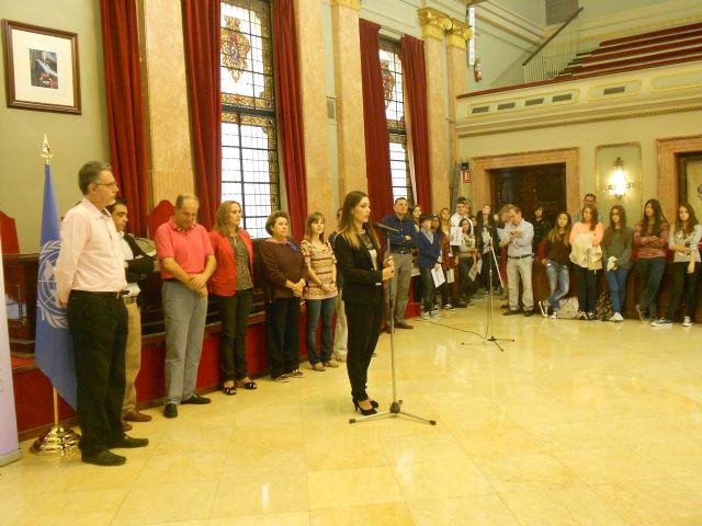 La Concejal de Políticas de Igualdad y Cooperación al Desarrollo, Alicia Barquero, ha presidido un acto en el que han participado estudiantes del IES Francisco Cascales y que ha consistido en la lectura de la Declaración Universal de los Derechos Humanos, la  izada de la bandera de las Naciones Unidas y la colocación de un póster informativo sobre la organización.