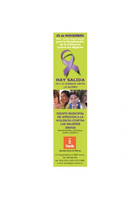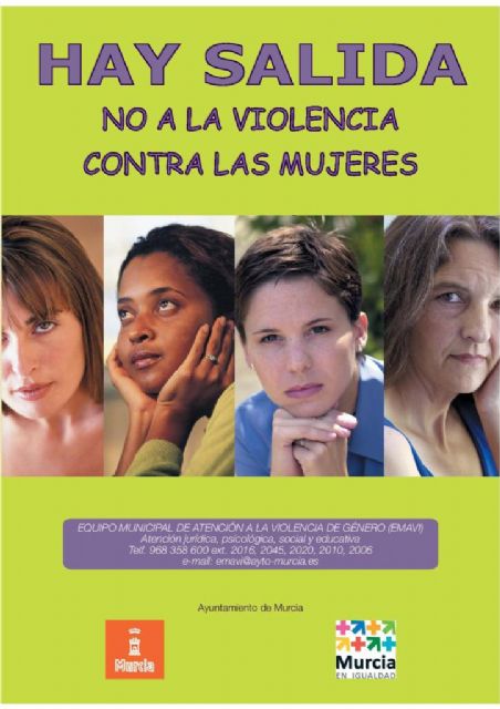 El Ayuntamiento de Murcia pone en marcha a partir de mañana una campaña de sensibilización en todo el municipio con el lema: ‘Hay salida: No a la violencia contra la mujer’.
