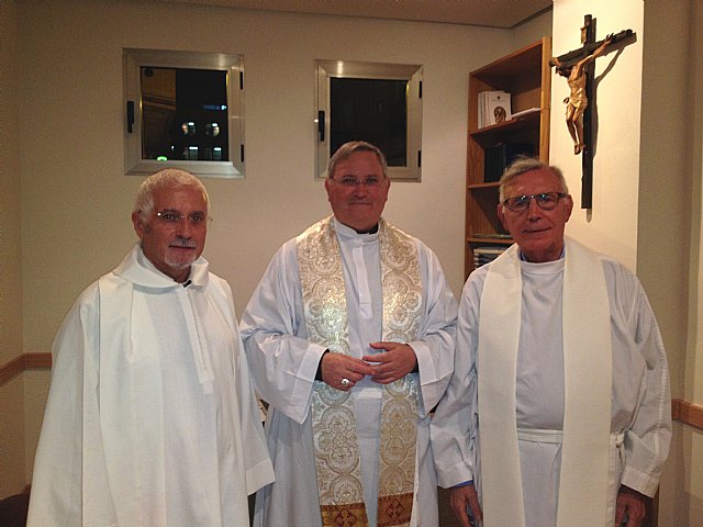 Fotografía (de izquierda a derecha): D. Joaquín Robles, colaborador de la parroquia de Santa María Madre de la Iglesia; Mons. Lorca Planes, Obispo de Cartagena; y D. Juan Cánovas, párroco de Santa María Madre de la Iglesia.