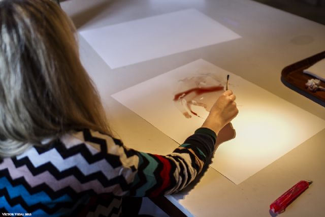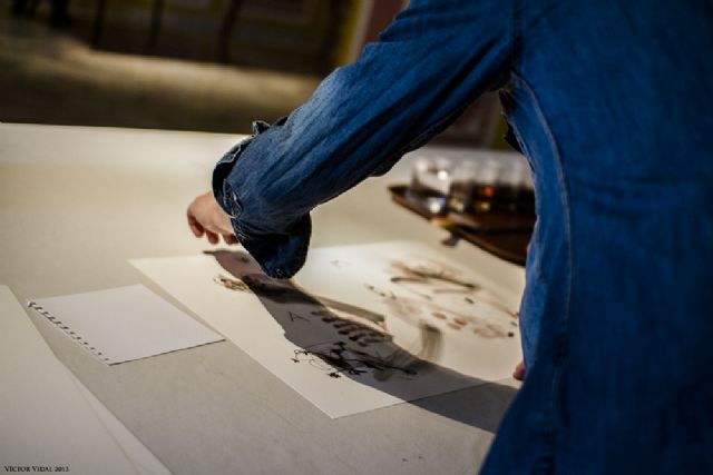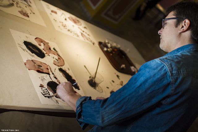 Veinticuatro artistas propuestos por once galerías de arte de la región de Murcia participaron hoy en el "III Encuentro de Pintura al Vino" que se desarrolló en la hostería Palacete de la Seda, jornada durante la que propusieron con sus creaciones lo que ellos esperarían ver en la etiqueta o contraetiqueta de una botella, utilizando precisamente eso, vino.