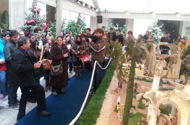 Los estudiantes, además, han visitado el belén municipal acompañados por el capellán de la UCAM, Luis Emilio Pascual. Allí han aprovechado para cantar villancicos y posteriormente han recorrido las calles de Murcia para felicitar la Navidad a los vecinos, repartiendo las tradicionales estrellas navideñas.