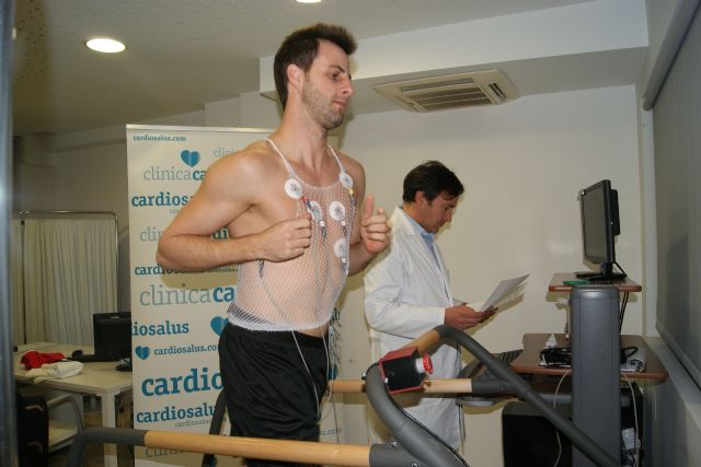 Después, bajo la supervisión del cardiólogo de Cardiosalus, Domingo Pascual, y el preparador físico del conjunto murciano, Diego Villarejo, realizó las pruebas de esfuerzo, las que pasó con nota, por su buen estado de forma.