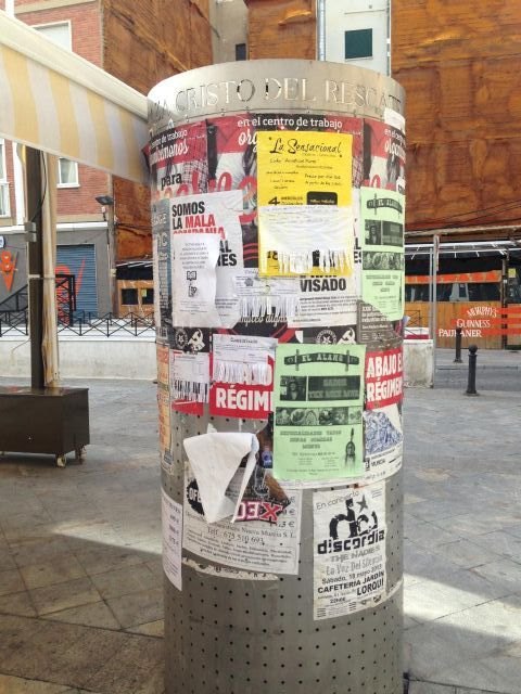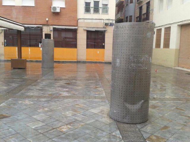 Durante estos días, técnicos de la concejalía han trabajado en retirar los carteles publicitarios colocados en las columnas de la plaza y en los paneles que ocultan los contenedores.