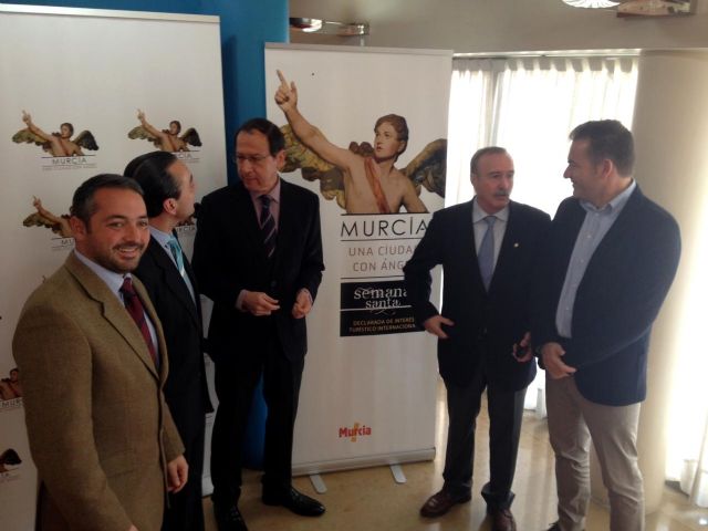 El Alcalde de Murcia, Miguel Ángel Cámara, ha presentado esta mañana, acompañado por el Presidente del Real Cabildo Superior de Cofradías, Ramón Sánchez-Parra, la nueva marca turística Murcia, una ciudad con Ángel. Al acto también han asistido el Concejal de Turismo, Miguel Cascales, y el Concejal de Cultura, Rafael Gómez.