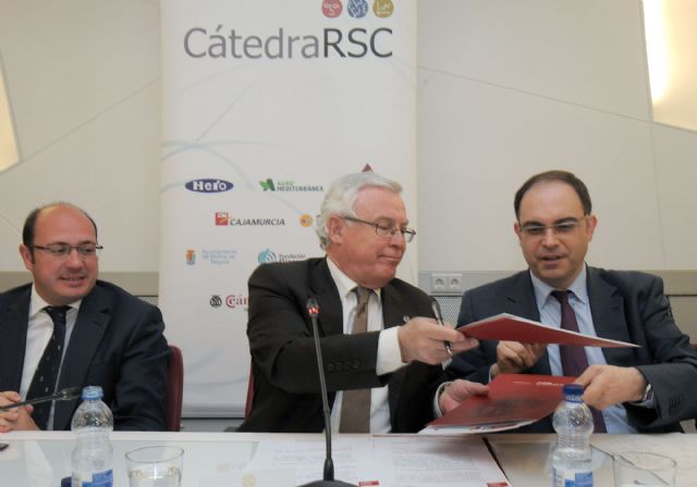 La Universidad de Murcia y la Fundación Cajamurcia han firmado el convenio por el cual ésta amplía su aportación al proyecto Plataforma de Acción Social que desarrolla la Cátedra de Responsabilidad Social Corporativa (RSC) de la institución docente, pasando este año de 6.000 a 9.000 euros.