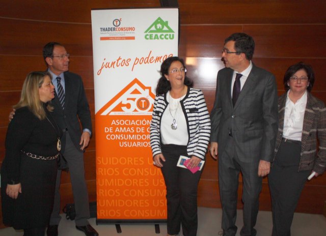 La satisfacción del consumidor tiene que ser el objetivo primordial de la cadena agroalimentaria sostenible que, además, debe estar basada en alimentos sanos y saludables y promover la implicación del sector primario como un eslabón más de la cadena que se forma desde que se origina el producto en el campo hasta que llega a la mesa. En este principio ha establecido el Alcalde, Miguel Ángel Cámara, su intervención en la apertura de las V Jornadas de Consumo que se han celebrado esta mañana, organizadas por Thaderconsumo, con el lema “Cadena agroalimentaria sostenible. Alimentos sanos y saludables”. Además del Alcalde, ha participado en la inauguración el Consejero de Industria, Empresa e Innovación, José Ballesta, y la presidenta de la Federación Murciana de Asociaciones de Amas de Casa, Consumidores y Usuarios, Juana Pérez.