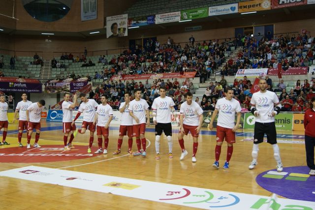 Con motivo del Derbi Regional entre ElPozo Murcia FS y Montesinos Jumilla FS, disputado esta noche en el Palacio de los Deportes, ambos equipos han apoyado la campaña 'Hay Salida a la Violencia de Género'.