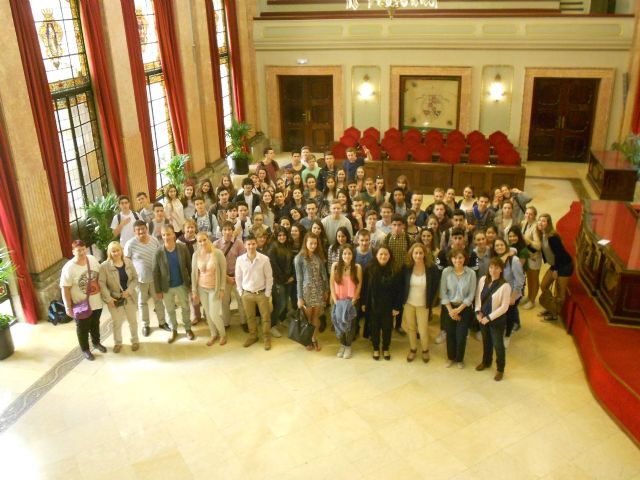 La Concejal de Educación, María Dolores Sánchez, ha ofrecido hoy una recepción a estudiantes del IES Licenciado Francisco Cascales, de Murcia, y de centros educativos de Askim (Noruega), Steenwijk (Holanda), Bratislava (Eslovaquia) y Rostock (Alemania) que participan en un proyecto Comenius.