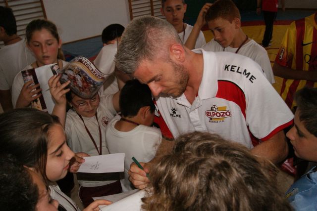 Y no podían faltar las firmas de autógrafos y las fotos de recuerdo, no sólo con los escolares, sino también los profesores y los padres posaron con Miguelín y José Ruiz.