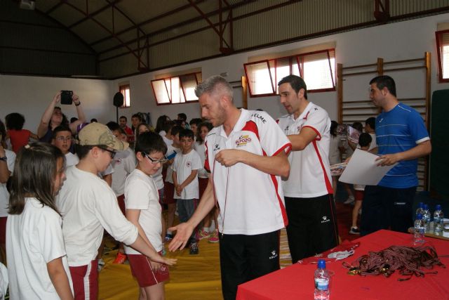 Tras los campeonatos escolares en diversos deportes; lucha, fútbol, baloncesto... llegó el día de celebrar el buen trabajo de todos los alumnos y alumnas en el colegio concertado Torre Salinas de Aljucer. Y ElPozo Murcia FS quiso sumarse a la gran fiesta de los escolares con Miguelín y José Ruiz como maestros de ceremonias.