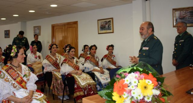 La Guardia Civil de Murcia ha recibido durante la mañana de hoy, la visita de la Reina de la Huerta 2014, Andrea Belmonte Martínez y su corte de damas de honor, junto con el presidente de la Federación de Peñas Huertanas, Antonio Avilés Soriano.