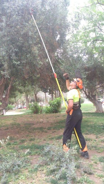 A la plantación de árboles se suman los trabajos de resembrado del césped en varios parterres de la plaza Bohemia y alrededores. También se han realizado los trabajos de siega y la poda de formación de los olivos que se encuentran en el jardín Bohemia del barrio de Santa María de Gracia.