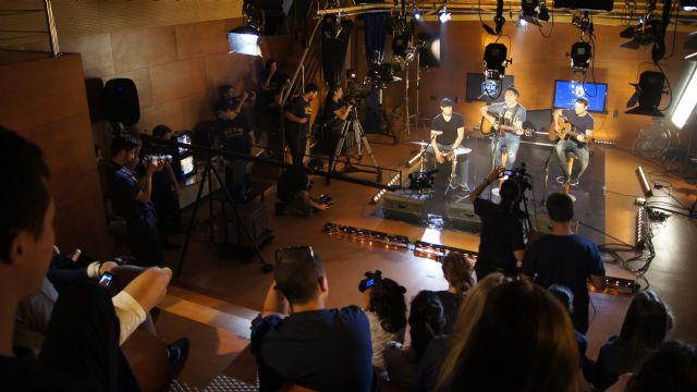 Estudiantes de 4° curso del grado en Comunicación Audiovisual de la UCAM y de 1° del Ciclo Formativo de Grado Superior en Realización de Proyectos Audiovisuales y Espectáculos del Instituto Superior de FP San Antonio, coordinados por sus profesores, se encargaron de preparar las instalaciones del Estudio de Radio y de Televisión, convirtiéndolo así en una auténtica sala de conciertos, además de participar en la realización y en la producción del evento.
