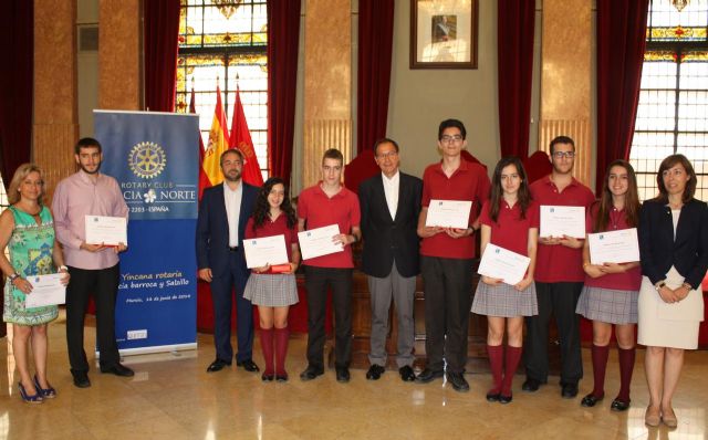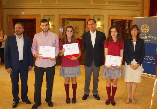 Al acto de entrega de premios, celebrado esta mañana en el Ayuntamiento, ha asistido también la presidenta del Rotary Club Murcia Norte, Viviane Barelli, además de otros miembros de este colectivo, y del Concejal de Cultura, Rafael Gómez, cuy departamento colabora en el proyecto.