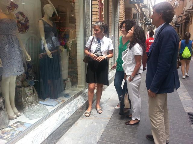El concejal de Empleo, Comercio y Empresa, José María Tortosa; la presidenta de Asociación AC Murcia Centro, Begoña Dávalos; y la interiorista y ponente de la charla de hoy, Elena Miranda, han hecho un recorrido por los comercios del centro de la ciudad.