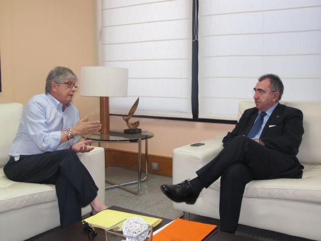 El consejero de Fomento, Obras Públicas y Ordenación del Territorio, Manuel Campos, se reunió hoy con el alcalde pedáneo de Puente Tocinos de Murcia, Enrique Cano, para analizar la posibilidad de ejecución de diversas operaciones de conservación y mejora en carreteras que discurren por el término municipal.