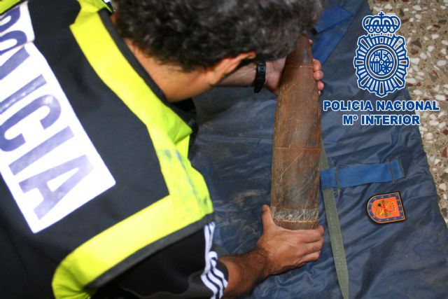 La Policía Nacional neutraliza y desactiva un proyectil de artillería hallado en una vivienda de El Palmar