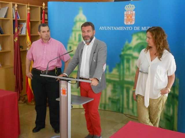 El Concejal de Turismo, Miguel Cascales, ha explicado que de forma experimental se colocará un toldo en color beige claro en un tramo de la calle Platería y si la experiencia funciona se pondrán toldos en la totalidad de la calle Platería y Trapería. Cascales ha estado acompañado de Julio Sánchez Luengo, de la perfumería y farmacia Ruiz Seiquer, y Elena Tomás, de Óptica Tenvisión.