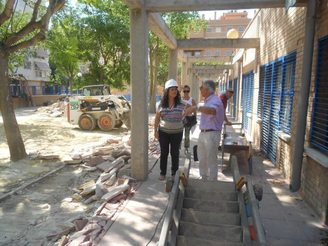La Concejal de Educación, María Dolores Sánchez, ha visitado esta mañana la escuela Infantil Nuestra Señora de la Fuensanta (Santiago el Mayor) en la que se está trabajando en la reforma del patio y reposición de azulejos en aulas y cocina. Las obras previstas en el resto de escuelas infantiles son: