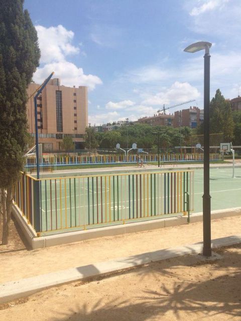 Se ha sustituido el estanque que existía por una zona con dos canchas de minibasket para niños, una pista doble de baloncesto 3x3 y se han acondicionado dos canchas de baloncesto y dos pistas multiusos. Además, en la zona también hay un parque infantil.