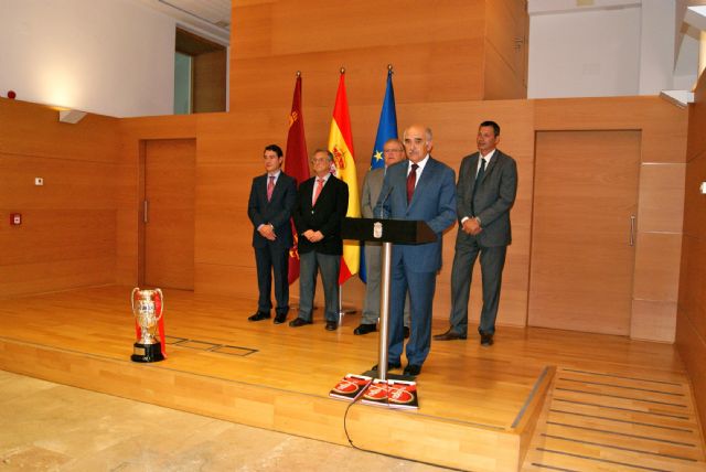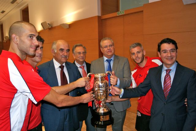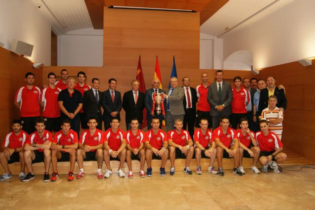 El presidente de la Comunidad de Murcia, Alberto Garre, acompañado del Consejero de Presidencia y Empleo, José Gabriel Ruiz, y el Director General de Deportes, Antonio Peñalver, han recibido a la plantilla de ElPozo Murcia FS junto a su presidente, José Antonio Bolarín, directivos y dueño del Club y patrocinador, Tomás Fuertes, tras conquistar la Supercopa de España 2014, el pasado domingo en Alcalá de Henares.