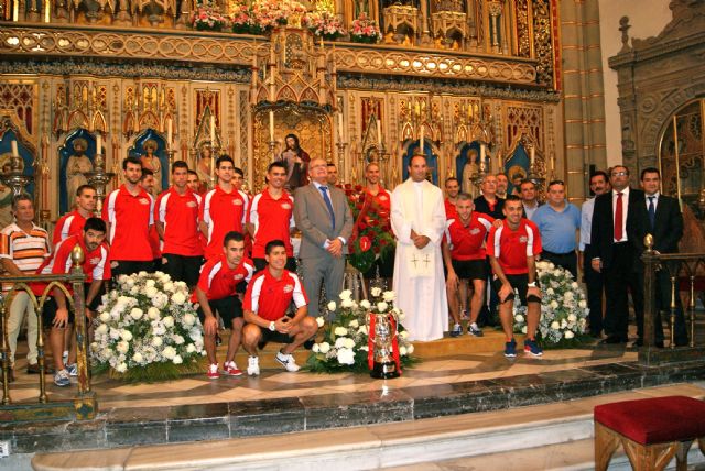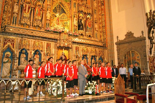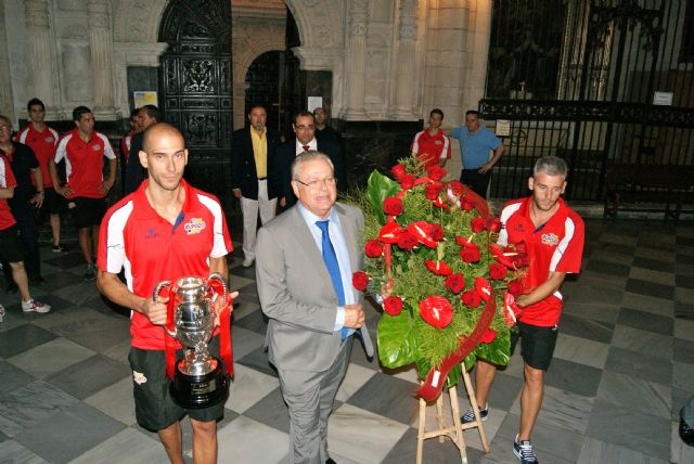 El presidente del Club, José Antonio Bolarín, directivos, el Director General y Deportivo, Fran Serrejón, el entrenador, Eduardo Sao Thiago 'Duda', cuerpo técnico y los jugadores de la plantilla de ElPozo Murcia FS, visitaron a la patrona de Murcia, la Virgen de la Fuensanta, en la Catedral tras la conquista de la Supercopa de España, el apsado domingo ante Inter Movistar, y antes del inicio liguero.
