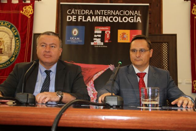 La Universidad Católica San Antonio y la Fundación Cante de las Minas han puesto en marcha los cursos de la Escuela de Arte Flamenco, cuyo periodo de inscripción ya está abierto. Francisco Bernabé, alcalde de La Unión y presidente ejecutivo de la Fundación Cante de las Minas, y Antonio Sánchez Pato, decano de la Facultad de Deporte de la UCAM, han sido los encargados de ofrecer los puntos clave de estos cursos que se enmarcan en la Cátedra Internacional de Flamencología que dirige Estrella Morente.